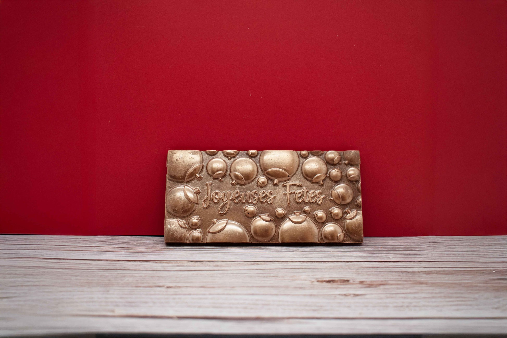 Craquez pour notre tablette de chocolat au lait maison, délicatement décorée de l’inscription "Joyeuses Fêtes".