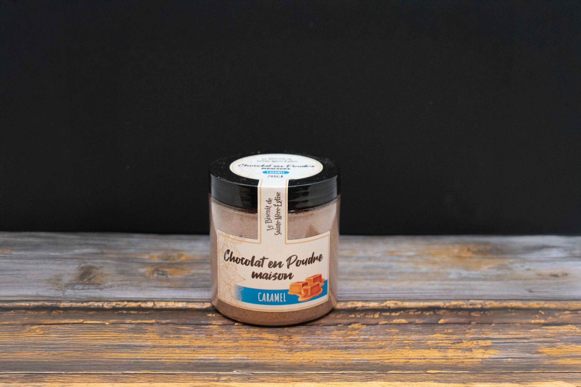 Plongez dans un moment de douceur avec notre poudre de chocolat chaud au caramel, élaborée artisanalement dans notre atelier normand.