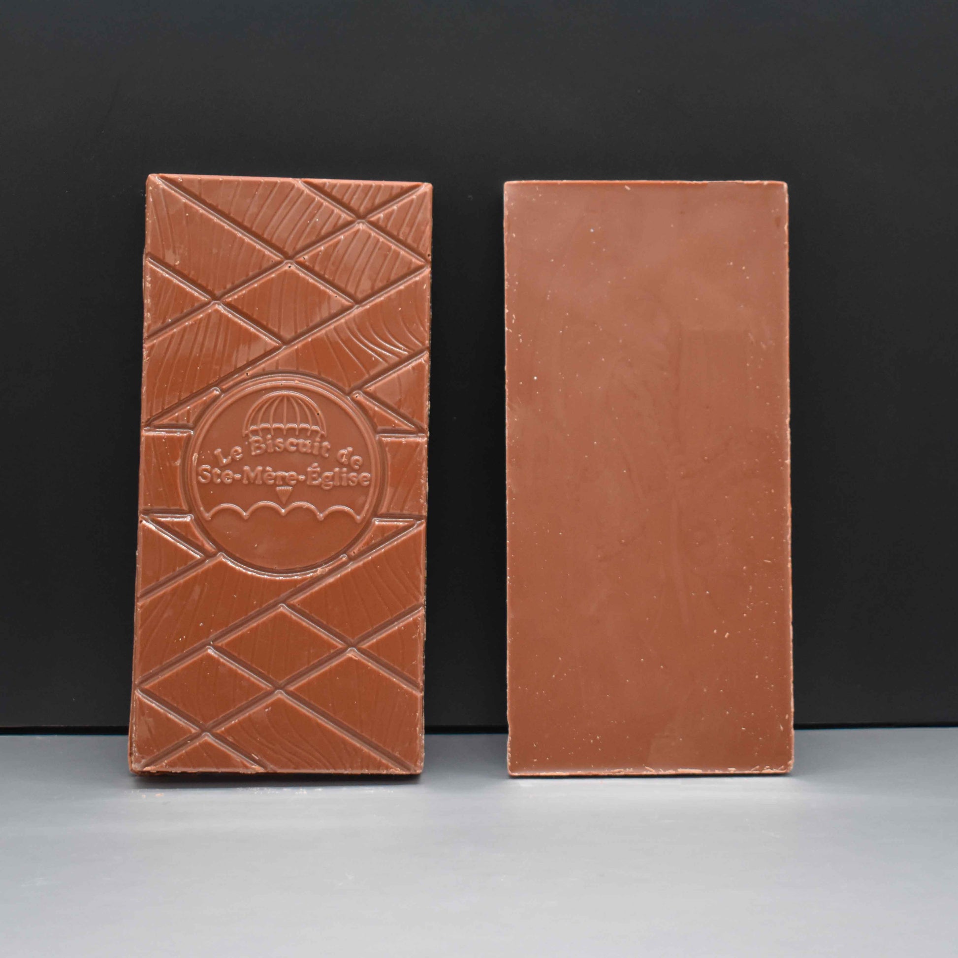 Savourez la simplicité et l’authenticité avec notre tablette de chocolat au lait maison, élaborée dans nos ateliers à Sainte-Mère-Église.